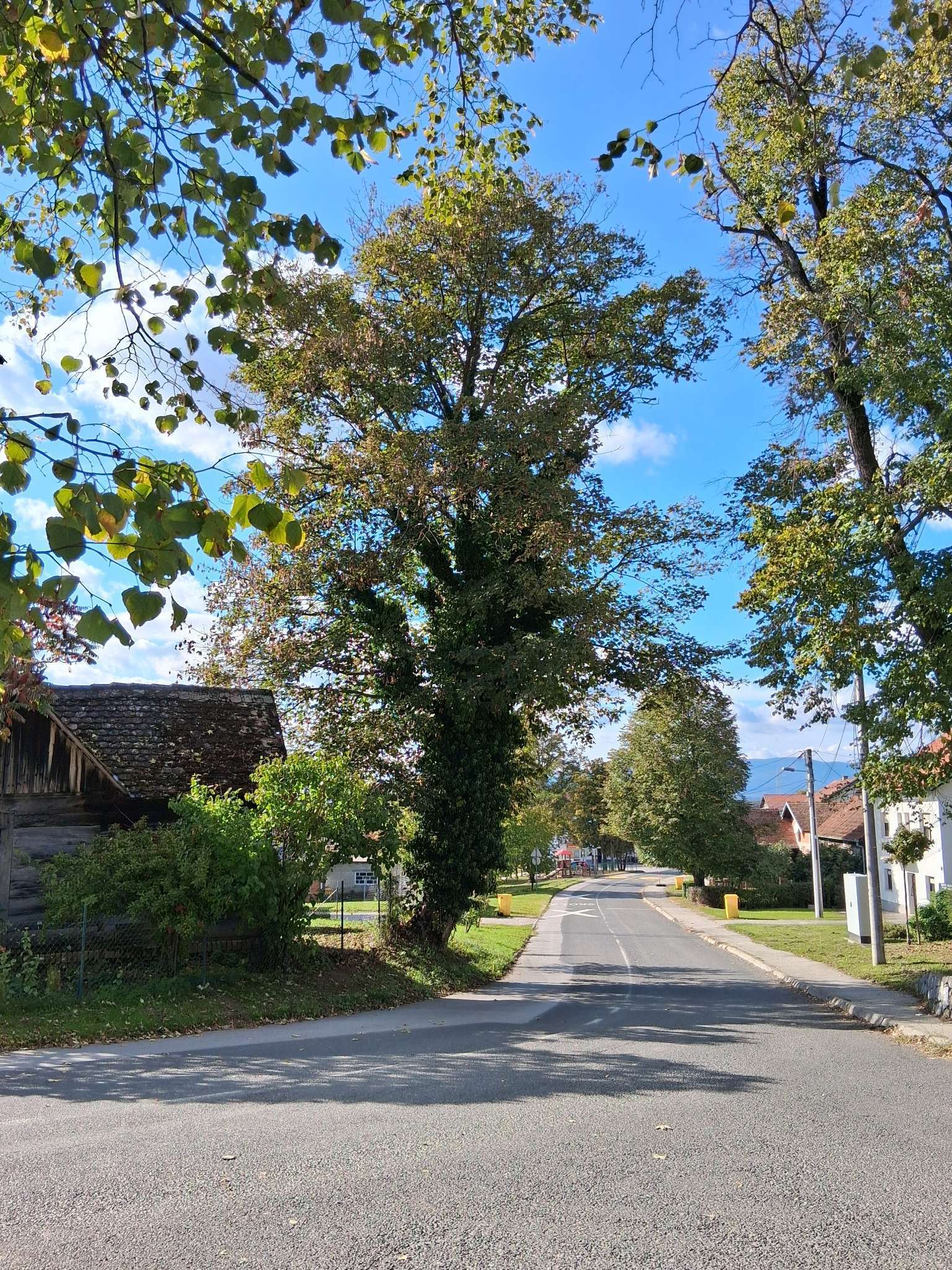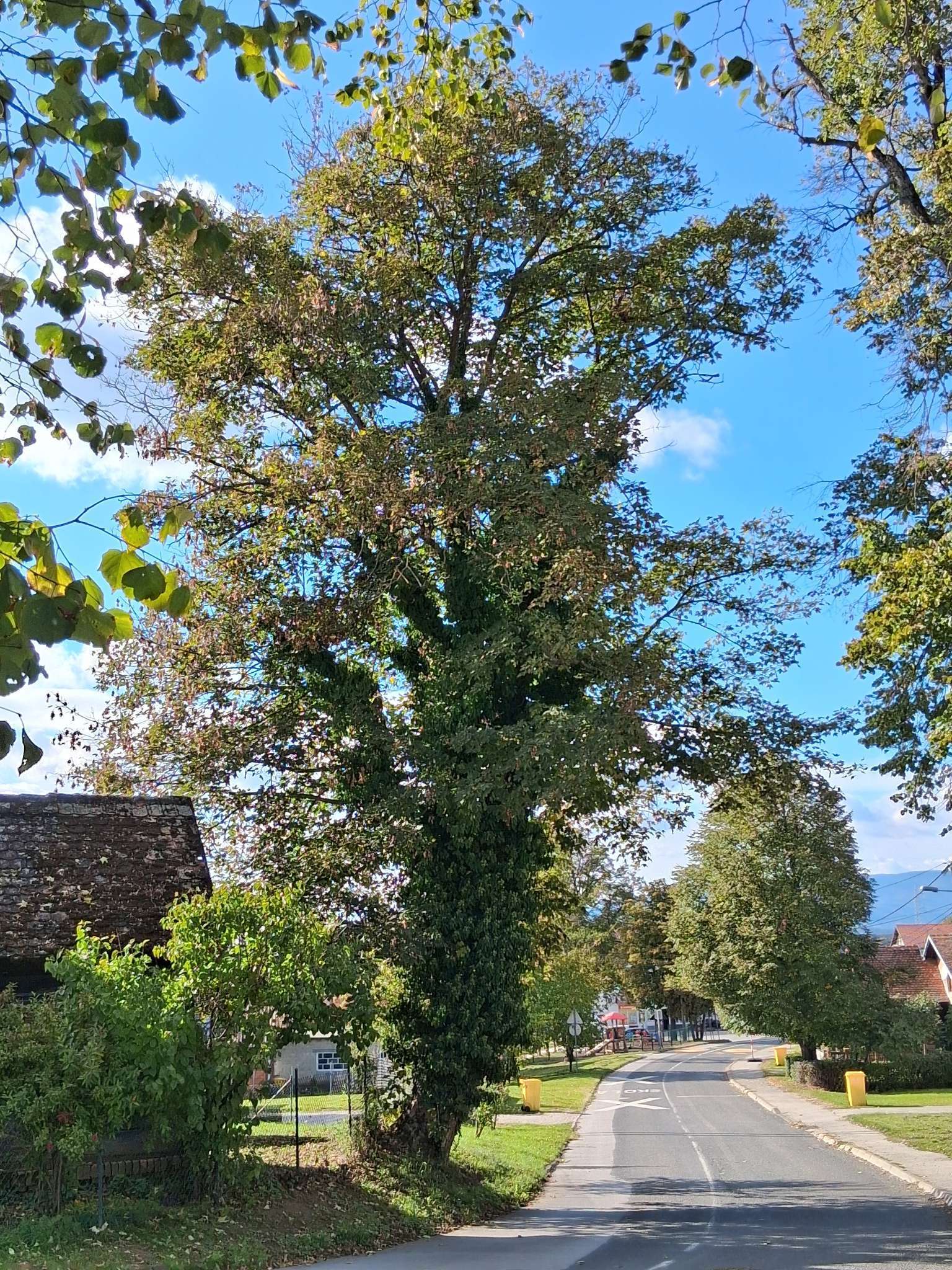 Radi se o velikom, starom drvetu koje se nagnulo prema cesti i ima trule grane (kojih također ima i iznad naše drvene kuće). Skoro tijekom svakog nevremena, osobito u ljetnim mjesecima otpadaju velike suhe grane na cestu, što predstavlja ozbiljnu opasnost za prolaznike i promet (pješake i automobile).