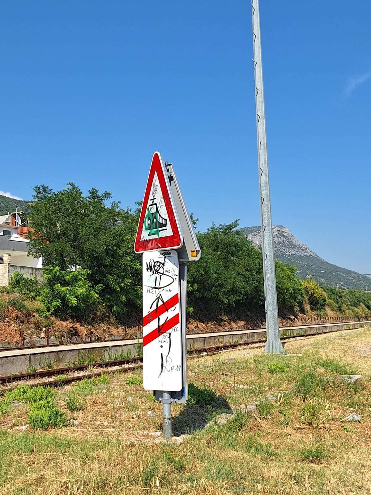 Uništeni prometni znakovi upozorenja za željeznički prijelaz u ulici Zagorski put u Kaštel Starom u smjeru zapad - istok prema ulici Put Šušnjara. Ovo je prijavljeno komunalnom redaru u svibnju 2025., međutim bez reakcije.