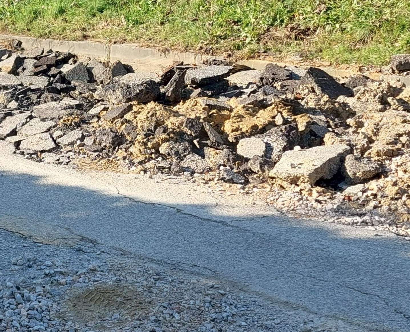 Nakon puknuća vodovodne cijevi pred oko mjesec dana, još nije popravljena cesta ispred kuće br.26 u ulici Dominika Mandića i raskršća ulica Dominika Mandića iŽlebec.