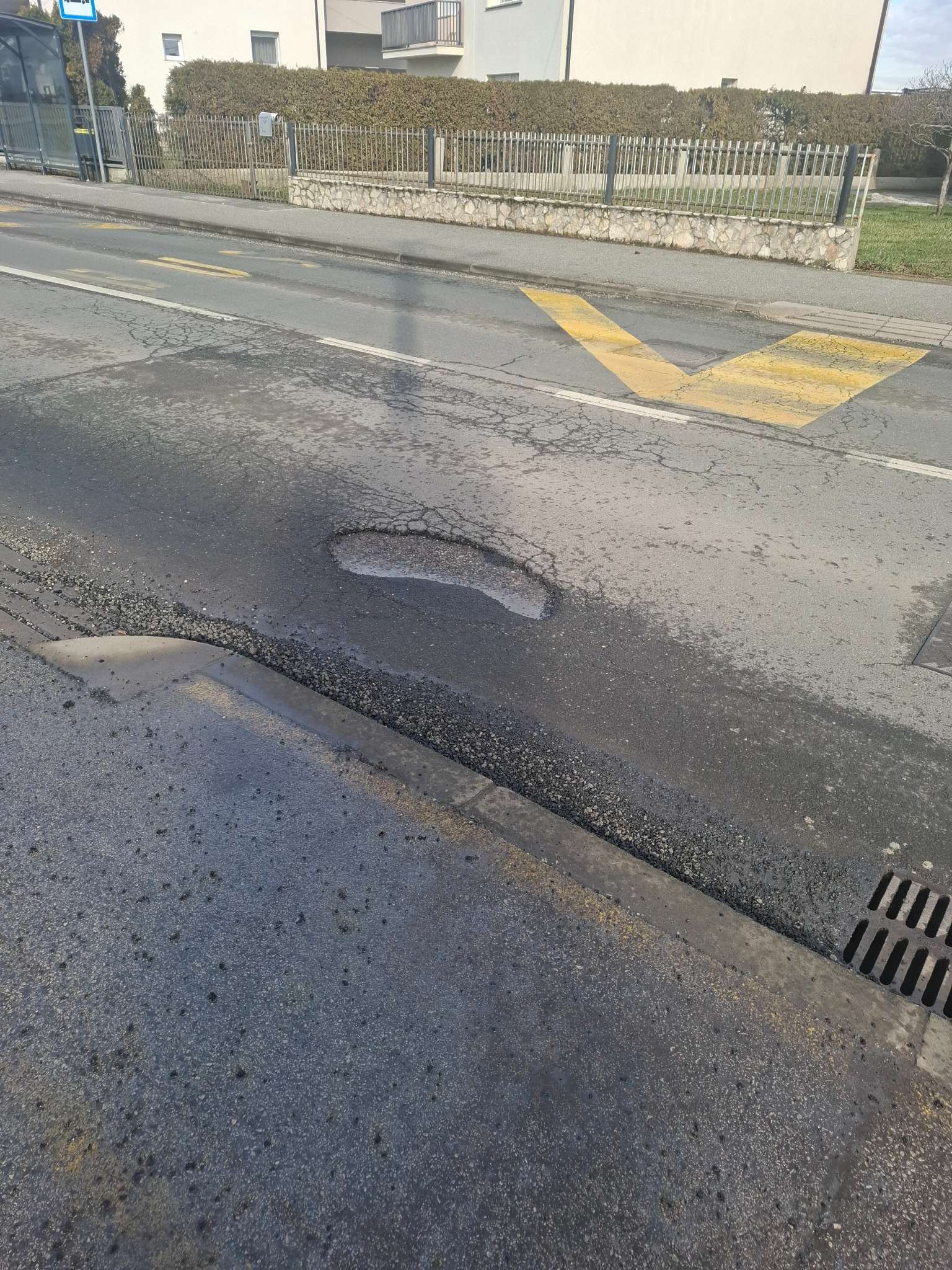 Ogromna rupetina ispred ispred kč broja 87,kamenje udara po pješacima,te šaht ponovno raskliman i lupa..niže prema kružnom toku još najmanje dvije slične rupe u kralja Tomislava..ophodnja ceste se vozila par puta i ništa..bio niže znak za oštećenje..no maknut sa ceste...