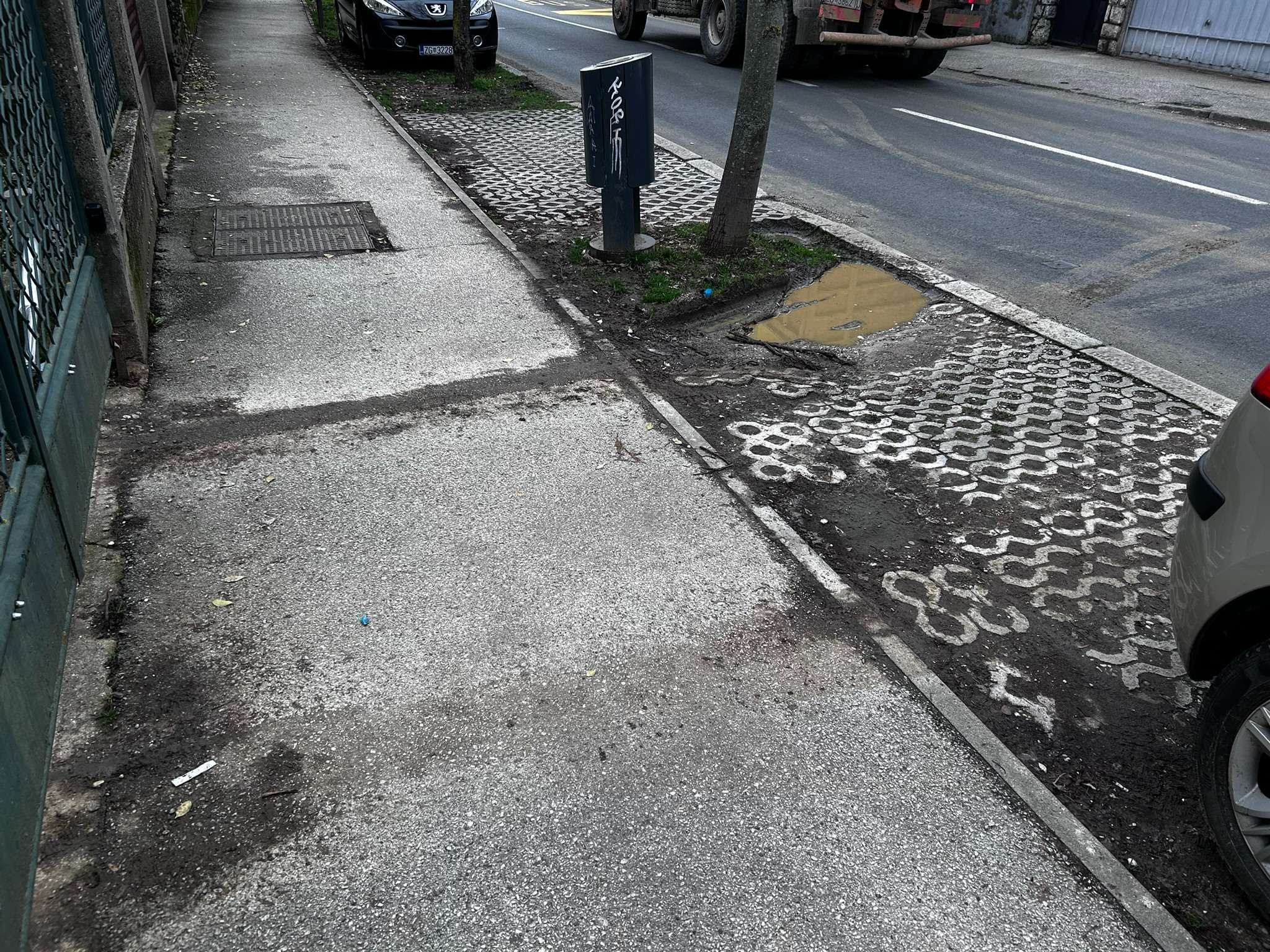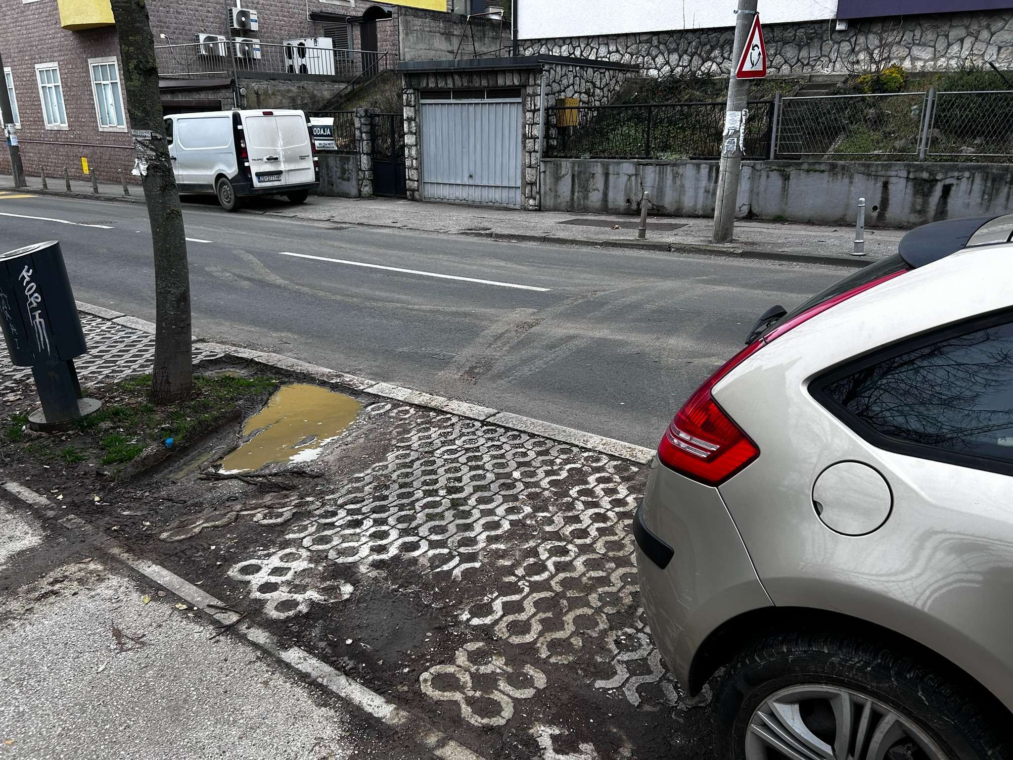 Poštovani, prilikom rekonstrukcije nogostupa koji je bio prije podosta godina, nikada nisu bili sanirane betonske osmice na javnoj površini koje ujedno i služe kao prijelaz u privatno dvorište. Ta površina je bila uništena prilikom sanacije nogostupa.